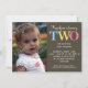 Das Wort "ZWEI" steht heraus auf dieser trendy Geburtstags-Party Einladung für ein Kind, das zwei Jahre alt dreht. Jeder Buchstabe wird mit einem anderen bunten Muster behandelt. Alle Partyinformationen drucken gegen reiches Braun. Fügen Sie ein Bild des Kindes dem links hinzu und fügen Sie alle Extrainformationen über die Rückseite hinzu oder löschen Sie sie einfach, um den hinteren freien Raum zu verlassen. Verfügbar mit zusammenpassenden Produkten.