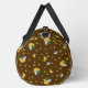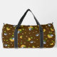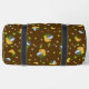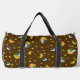 Muster mit Kaffeetassen, Blume und Croissants auf dunkelbraunem Hintergrund