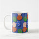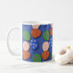 Diese farbenfrohe Tasse mit gemusterten Ostereiern vor blauem Hintergrund. Perfekt als Geschenk oder um mit kleinen Ostereiern zu füllen, um als Geschenk zu geben.