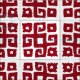 Stammesschlüssel Stil antiken griechischen inspiriert, wiederholen gemusterte Stoff. Ideal für Quilting und andere Nähprojekte. Das Schlüsselmuster ist in dunkelrot und die Hintergrundfarbe kann in Anzug mit den Anforderungen geändert werden. Kunst und Design von Sarah Trett.