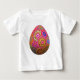 Ein buntes Design eines großen Ostereis mit bunten Ostermustern in Rosa, Blau und Gelb. Ideal für die Ostersaison.