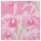 Feines rosa und grün stilisierte orchid Blume gemustertes Gewebe. Die Hintergrundfarbe kann geändert werden, wenn dies zur Zeit rosa erforderlich ist. Grafische Kunst und Design von Sarah Trett.