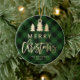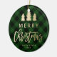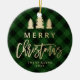 Geben Sie Ihren Lieben in dieser Ferienzeit einen personalisierten Weihnachtsschmuck. Das rustikale Urlaubsornament weist ein kariertes, grün-schwarzes Büffel-Muster auf, die Wörter "Frohe Weihnachten" und Weihnachtsbaumgrafik in einem Imitat mit Goldfolienstil und die Platzhalter für Ihren eigenen Text und Foto auf der Rückseite.