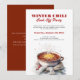 Laden Sie Freunde und Familie zu Ihrem Winter-Chili-Kochwettbewerb ein. Perfekt für Partys, bei denen Gäste ihr Lieblings-Chili mitbringen. Passen Sie Text, Datum und Ort für eine persönliche Note an. Warmes, einladendes und festliches Design, ideal für Wintertreffen.