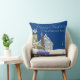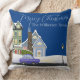 Dieses Kissen mit individuellem Charakter bietet ein gemütliches Winterabendthema auf dunkelblauem Hintergrund. Ein Bild eines kleinen Autos zeigt, wie es an einem Weihnachtsabend vorbei an Häusern in einem kleinen Dorf oder einer Stadt fährt, mit einem Baum auf dem Dach.