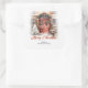 Trendy Weihnachtsfarben - staubgrünes Weissgrün und Kupfer und tiefrotes Rot für den Aufkleber sorgen für ein gemütliches Festhaus mit rustikaler roter Tür in einer Schneestadt - wahre Urlaubsatmosphäre. Einfach personalisiert mit Ihrem Namen, feststehendem Datum, Stadt oder anderen benutzerdefinierten Text.