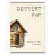 Dieser charmante Tischschmuck für die Hochzeit zeigt eine zauberhafte Illustration einer gemütlichen Holzhütte, die eine rustikale und einladende Atmosphäre schafft. Das Design verwendet erdige Töne mit sanften Brauntönen, Beigen und gedämpften Blautönen, um ein warmes und einladendes Gefühl zu erzeugen. Die saubere, moderne serifenlose Typografie liest "DESSERT BAR" in fetter Schrift, gefolgt von "bitte nimm dir ein Stück!" in kleinerer Schrift, was einen freundlichen Touch hinzufügt. Perfekt, um Gäste zum Dessertbereich auf Ihrer Veranstaltung zu geleiten, kombiniert dieses Schild minimalistisches Kunsthandwerk mit entzückenden Details, die das rustikale Thema unterstreichen.