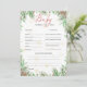Erschaffen Sie mit diesen gemütlichen Holiday Baby Predictions & Advice Cards einen wertvollen Sake für die Eltern, die Sie sein werden! Dieses interaktive Spiel, das auf Ihr Urlaubsthema Babydusche abgestimmt ist, bietet Ihnen die charmanten, von Hand gezeichnet Aquarellkekse und sanfte saisonale Muster. Die Gäste können diese bezaubernden Karten mit ihren Vorhersagen für das Baby ausfüllen (wie Geburtsdatum, Gewicht und Merkmale) und mit herzlichen Ratschlägen oder Wünschen für die neue Familie teilen. Sobald die Karten fertig sind, können sie in ein schönes Gedächtnisbuch übersetzt werden - ein Geschenk, das die Eltern für immer lieben werden. Diese geschlechtsneutrale Aktivität ist ideal für Weihnachten- oder Winterduschen und fördert das Lachen, die Liebe und die sinnvolle Verbindung zwischen den Gästen. Kauf einfach, vertreibe und genieße es, zuzusehen, wie jeder seine Weisheit und Träume für die Zukunft des Kleinen teilt!