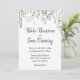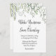 Eine elegante Aquarellmalerei mit tropischer Hochzeitseinladung mit einem dramatischen, schwarzen Aquarellwaschbecken mit exquisit bemalten grünen Palmen-Blätter und schimmernden Goldakzenten. Eine lebendige Goldswash-Skript-Kalligraphie kündigt Ihre Hochzeitsdetails an.
