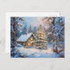 Gemütliche Winter-Hütte mit Weihnachtsbaum Postkarte
