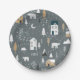 Gemütlicher blauer Winter im nordischen Dorf Pappteller