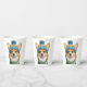 Eine herzliche Illustration eines fröhlichen Korgis mit einem gemütlichen Strickpulli und einer passenden blauen und grünen Mütze mit Pom-Pom. Die hellen Augen und der fröhliche Ausdruck machen dieses Bild zu einem perfekten Ort für Wintersportler und Liebhaber von Haustieren.