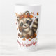 Charmanter Herbstschläger mit einer warmen Farbpalette mit pinecones und orangefarbenen Blätter; ein spielerisches, kawaii-Ambiente für Herbstkleidung und gemütliche saisonale Geschenke. Niedlich fallendes Tier.
