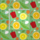 Stoffe mit niedlichen, lächelnden, Obst- und Gemüsefiguren auf grünem Hintergrund. Wählen Sie Ihren Stofftyp und wie viele Werften Sie brauchen, fügen Sie sie in Ihren Warenkorb, dann genießen Sie Ihre Nähprodukte oder Crafting Produkte.