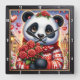 Gemütlicher Panda Winterrose Quadratische Wanduhr