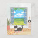 Gemütliches Interieur mit gemütlichen Fenstern und Postkarte
