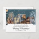 Gemütliches Winterdorf bei Nacht mit sinkendem Sch Postkarte
