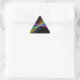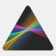 Dieses intensive Prisma vibrierendes Lila, rosa, rot, orange, gelb, grün und des Blaus gegen einen tiefen schwarzen Hintergrund auf diesem Dreieckaufkleber gibt eine starke Erklärung ab und wird den trostlosesten Tag erhellen. Groß für Gay Prideereignisse, beschaffend oder als Geschenk für LGBTQ Freunde und/oder Verbündete Mittel.