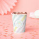Dieser neutrale Baby-Sprinkle-Papier-Becher zeichnet sich durch glitzernden Text und Konfetti mit einem diagonalen Streifen Hintergrundmuster in multicolorfarbenem Regenbogen und Silber aus. Ihr Gast wird dieses stilvolle und einzigartige Design Liebe geben.