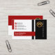 Ein übersichtliches Design zentriert auf rechteckigen Spalten. Im Rot sitzt die Spalte Ihren Namen und Stellenbezeichnung. Direkt oben, gibt es ein dünnes vertikales rotes Rechteck, das seine Sozialikonenknöpfe für Ihre Kartendetails begleitet. An der rechten Wand gibt es ein großes schwarzes Rechteck, das das Logo und seinen umgekehrten Handelsnamen durch die Seite hat. Umseitig hat die Karte zwei Teile. Das obere rote Stück hat das Logo und den Handelsnamen. Die weiße Spalte direkt unter hat die Geschäftsdetails zusammen mit seiner Slogan tagline Wahl. Wenn Sie sich entscheiden, ein Foto anstelle eines Logos zu laden, sind die Maße pix 1.000 x 1.000. Dieser Entwurf hat Lose Wahl, die Ihnen erlaubt, die Karte besonders anzufertigen. Diese Karte würde besonders für Köpfe der Firmen oder des bevorstehenden Chefs in Ihnen groß sein.