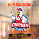 Ich habe dieses Generic Customize Fried Crispy Chicken 2 Front Window Cling für Komfort, Ecke Geschäfte und Tankstellen, die Hühnchen an ihre Kunden verkaufen. Ich benutzte den Mister Earl Schriftart mit einem Schatten, um dem Design einen Zuhause-Charakter zu geben. Ich werde einige kleinere Größen dieses Designs zu meiner Sammlung von Bannern & Signs im Convenience Corner Store hinzufügen. So muss man nicht mit der Größenordnung spielen.