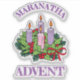 HINWEIS: Saints_Alot empfiehlt nicht, kleiner zu werden als dies hier der Fall ist. + Eine Illustration eines Adventskranzes aus Evergreens und Heiligen mit allen vier Kerzen, die zwischen dem gewölbten Wort Maranatha ("Komm, Herr") und dem horizontalen Wort Advent angezündet werden - beide in großen Hauptstädte. Die vier Kerzen des Kranzes repräsentieren und werden an den vier Sonntagen des Advents beleuchtet: die rosa Kerze, die dritte, die drei violetten Kerzen, die erste, zweite und vierte. Die drei violetten Kerzen symbolisieren Hoffnung, Frieden und Liebe; die rosa Kerze, Freude. + Image Credits: Schwarz-Weiß Advent Kranz-KI-generiert durch nachahmendes Farbbild via Pixabay, modifiziert und eingefärbt von Saints_Alots; Bogen von Elionas auch über Pixabay.