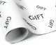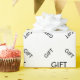 Generisches Packpapier Staaten das Offensichtliche mit dem Wort GIFT in schlichtem, schwarzem Text auf weißem Hintergrund wiederholt. Ein lustiger Weg, um Ihr Geschenk für eine trendige generische Geburtstagsfeier oder andere Feiern zu verpacken.
