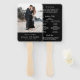 Moderner Hochzeitshandfan mit minimalem Design mit Ihrem bevorzugten Foto auf schwarzem Hintergrund. Der Rücken hat Ihre Reihenfolge der Zeremonie, Hochzeitsfeier und danke Ihnen Nachricht in einer Kombination aus einfachen Sans Serif Schriftartes und ein elegantes Drehbuch. Dieses schicke Programm Handfan wäre toll für eine gotische Hochzeit oder ein Halloween Hochzeitsfeier.