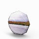 Eine farbenfrohe Aussicht auf den See an einem ruhigen Herbstmorgen. Schöne Bäume in einem farbenfrohen Regenbogen am Genfersee, Wisconsin. Foto wurde im Oktober 2014 aufgenommen.