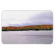 Eine farbenfrohe Aussicht auf den See an einem ruhigen Herbstmorgen. Schöne Bäume in einem farbenfrohen Regenbogen am Genfersee, Wisconsin. Foto wurde im Oktober 2014 aufgenommen.