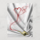 Diese Abbildung zeigt roten Rauch mit einem Herz, das aus einer goldenen Genie-Lampe auf weißem Samthintergrund kommt.