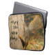 Dieser Laptop-Ärmel zeigt ein Foto eines niedlichen Eichhörnchens, das einen Baum hinunterkommt und die Worte "Genießen Sie die kleinen Dinge".