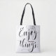 Elegante und moderne Tasche mit modernem Kalligraphie- und Polka-Punktmuster. Diese motivierend Tasche ist als Geschenk perfekt. Genießen Sie die kleinen Dinge!