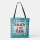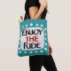 "Enjoy The Ride" ist ein niedliches inspirierendes oder motivierend Zitat mit einer weißen Akzent-Form, umgeben von weißen, texturierten, whimsikalen Punkten.