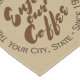 Ein personalisierter Tabellenläufer mit einem niedlichen Kaffeegeschäftslogo, das umfaßt, Ihre Familie oder Handelsname, Standort und Datum der Einrichtung oder andere Informationen im kreisförmigen Text der kleinen Kappen und der Ausdruck "genießen unseren Kaffee", der in der Mitte im Kaffeefarbbraun auf einem Leinwandstoffentwurf gedruckt wird, der wie ein Kaffeesack aussieht. Groß für ein Geschäft oder die Küche eines Kaffeeliebhabers!