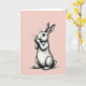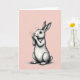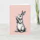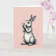 This card features a gentle long-eared bunny 🐰 standing upright against a soft blush-pink background, like it has paused to greet someone special. The bunny’s front paws rest near its mouth, giving it a shy, affectionate look that feels like a quiet moment between close friends. Fine gray linework and careful cross-hatching shape the fur, adding depth along the cheeks, chest, and legs without using loud color. Its large, dark eyes catch the light, creating a tender gaze that seems to linger on whoever is holding the card 🐇. The background stays pale and calm with faint, almost striped texture that keeps the focus on the bunny’s pose. Small Easter text sits near the top in a simple, light gray tone, leaving plenty of open space around the illustration. The overall layout is centered and airy, with the bunny’s ears reaching upward and the blush backdrop fading softly toward the edges.