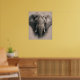 Gentle Elephant Gaze Poster. Dieses visuell auffällige Poster erfasst das ganze Gesicht eines Elefanten und blickt direkt auf den Betrachter mit einem Sinn für weise Gelassenheit. Die Haut des Elefanten wird mit bemerkenswerten Details dargestellt, wobei die einzigartigen Texturen und tiefen Falten, die für seine Art charakteristisch sind, hervorgehoben werden. Die tiefen, seelenvollen braunen Augen vermitteln eine ruhige Intelligenz und eine majestätische Präsenz, die Betrachtung und Verbindung einlädt. Set vor einem sanften, neutralen Hintergrund, konzentriert sich die Komposition ausschließlich auf das würdevolle Gesicht des Elefanten und unterstreicht seine Stärke und Weisheit. Dieses Poster verkörpert die majestätische Schönheit eines der ehrwürdigsten Wesen der Natur und bietet Ruhe und Ehrfurcht.