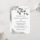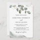 Eine Eukalyptus-Outdoor-Einladung ist eine wunderschön gestaltete Einladung, die sich perfekt für jede Outdoor-Veranstaltung oder Ansammlung eignet. Die Einladung zeichnet sich durch ein elegantes und rustikales Design aus, mit üppig grünen Eukalyptus-Blätter als Schwerpunkt. Die Blätter dienen oft als natürliche Rahmen oder Rahmen für den Text und die Grafik der Einladung und schaffen so ein anspruchsvolles und einladendes Aussehen. Diese Einladungen werden häufig für Veranstaltungen im Freien wie Hochzeiten, Gartenfeiern und andere naturbelassene Party genutzt. Sie können so angepasst werden, dass sie die spezifischen Details des Ereignisses, wie Datum, Uhrzeit, Ort und UAWG, enthalten. Einige Eukalyptus-Einladungen im Freien beinhalten auch zusätzliche Designelemente wie Blumenakzente, Aquarellbilder oder Kalligraphie-Schriftart, um eine zusätzliche Touch an Eleganz zu schaffen.