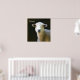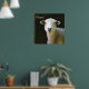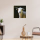 Dieses Poster zeigt ein süßes, sanftes Schaf, das vor seiner Zuhause in Connecticut stehend ist.