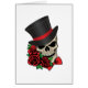 Der Schädel des Gentleman ist in seinem feinsten Hut und seiner Krawatte aus rotem Bogen mit wunderschönen rote Rosen gekleidet.