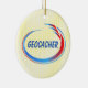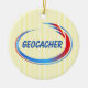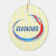 Geocacher Text mit einem blauen und roten ovalen Splash ist ein einzigartiges Geocaching Geschenkdesign für Cachers an Geburtstagen, Feiertagen und Geocaching-Veranstaltungen.