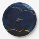 A luxurious abstract composition featuring deep midnight navy and inky blue tones, dramatically edged with shimmering gold vein accents. Inspired by polished agate and geode formations, this design blends rich texture with elegant contrast, evoking sophistication, mystery, and modern glamour.