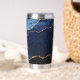 A luxurious abstract composition featuring deep midnight navy and inky blue tones, dramatically edged with shimmering gold vein accents. Inspired by polished agate and geode formations, this design blends rich texture with elegant contrast, evoking sophistication, mystery, and modern glamour.