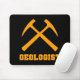 Geologe - schwarzes mousepad mit orange Collegeartbeschriftung und gekreuzten den Felsenhämmern grafisch.
