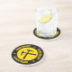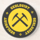 Geologist - Untersetzer aus schwarzem und gelbem Sandstein mit kollegialem Schriftzeichen und gekreuzter Gesteinshammergrafik.