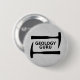 Geologie-Guru - graues Knopf-Button mit schwarzen Beschriftungs- und Felsenhämmern.