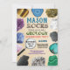 [alle Texte außer sind bearbeitbar] Gelegenheit: Geburtstagsparty für Kinder, Junge oder Mädchen. Thema: Geologie Party - Felsen, Edelsteine, Kristalle. Saison: die ganze Saison. Stil: Rustikal, farbenfroh. Farben: schwarz, braun, blau, grün und andere Edelsteine. Grafiken: rustikaler Papierhintergrund, Sammlungen von Felsen, Steinen, Edelsteinen und Kristallen.