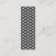 Eine Vorlage für die Visitenkarte im Lesezeichen-Stil. Ein abstraktes geometrisches Muster auf der Vorderseite. Das Design auf der Rückseite ist oben und unten mit einem geometrischen Muster aus einem speziellen Symbol Schriftart, die Eingabe einer beliebigen Zeichenkette von fünf wiederholten Buchstaben erstellt ein anderes Muster so viel Spaß zu experimentieren. Unter der Dekoration oben steht das Wort "LESEZEICHEN" und darunter ein großer Leerbereich, der für kleine Notizen verwendet werden kann, z.B. eine wichtige Seite, ein Kapitel oder Verse Referenzen, auf die Sie sich gewollt haben. Offensichtlich sehr nützlich, wenn Sie eine Menge Bücher studieren. Ganz unten, direkt über der Fußbodendekoration, befinden sich Textfelder für einen Firmennamen und eine Website-Adresse, da es sich um eine Visitenkarte sowie ein nützliches Lesezeichen handelt und auch als Werbemittel gedacht ist. Während die Geschäfts- und Kontaktdaten minimal behalten wurden, kann das Design auch bei Bedarf weiter angepasst werden. Alternativ können diese geschäftlichen Textfelder gelöscht werden, wenn die Karten ausschließlich als Lesezeichen für den persönlichen Gebrauch bestimmt sind, oder Sie können stattdessen Ihren Namen und Ihre Telefonnummer oder eine E-Mail-Adresse angeben.