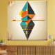 A vibrant and symmetrical composition where triangles and lines intertwine in harmony. Warm and cool tones create contrast and depth, evoking both technology and ancestry in a single emblem.