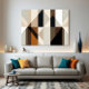This abstract work blends geometric shapes in earthy and neutral tones, crafting a harmonious balance between structure and softness. The intersections of triangles and rectangles suggest movement and depth, inviting serene contemplation of visual order in a play of light and shadow.